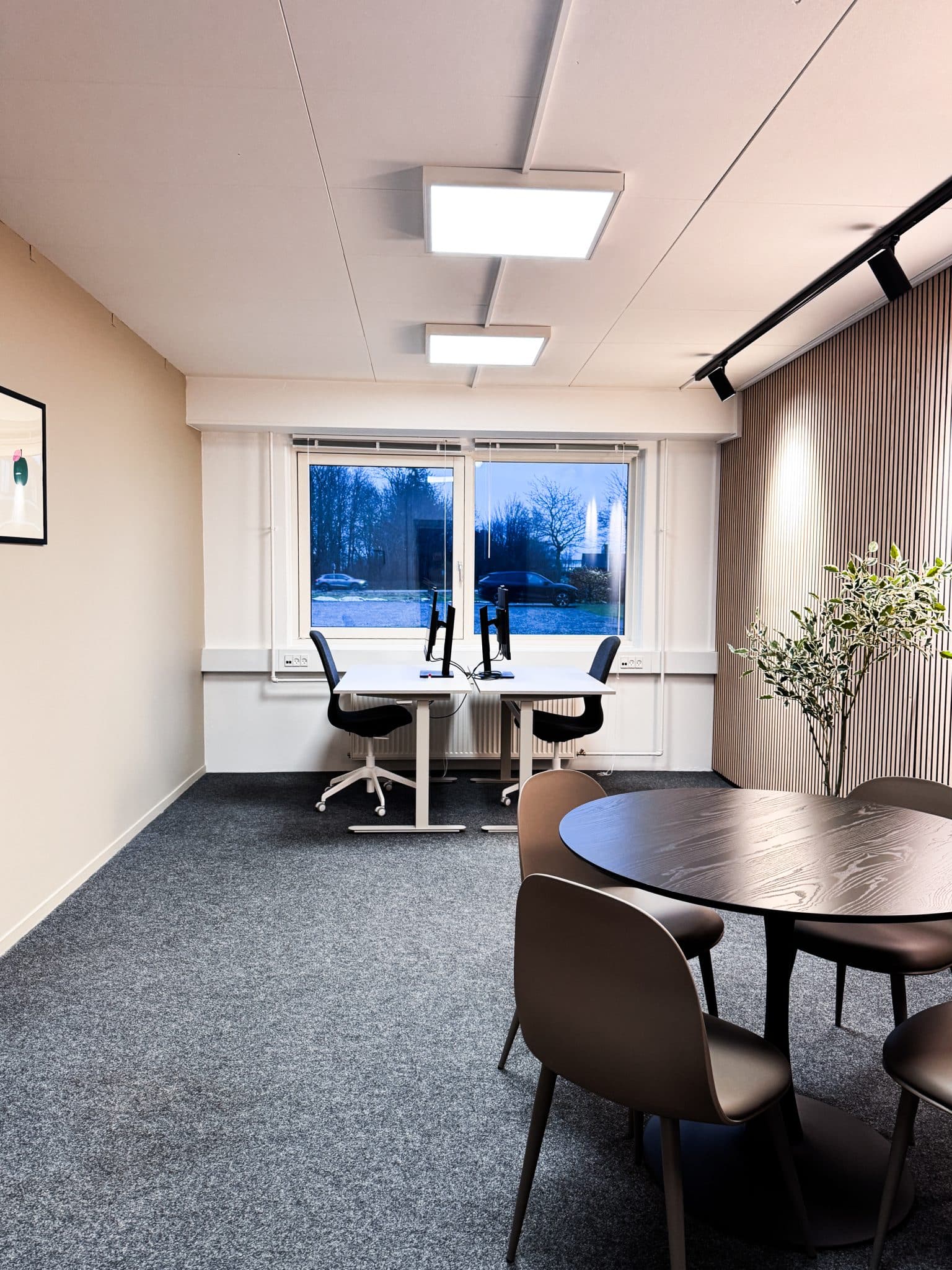 Kontorlokalerne er lyse og indbydende, og du har adgang til WIFI fra dag ét. Lejere i Business Park Nord kan uden beregning booke mødelokaler.